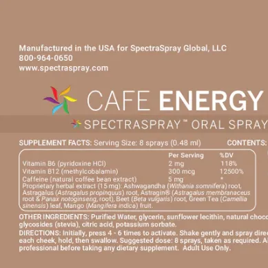 SpectraSpray™ Café Energy is an easy-to-use, vegan oral spray supplement that gives you an instant, natural boost of energy when you need it.